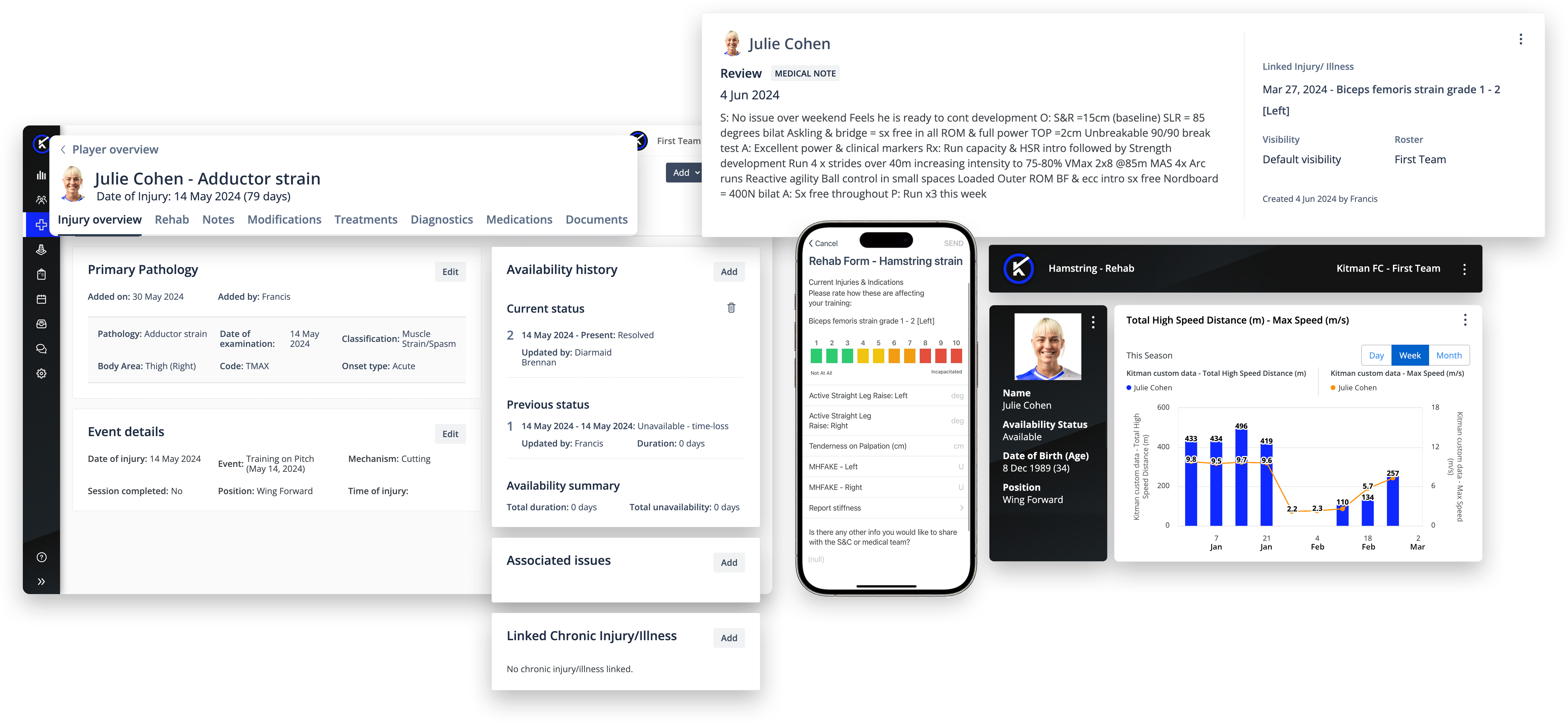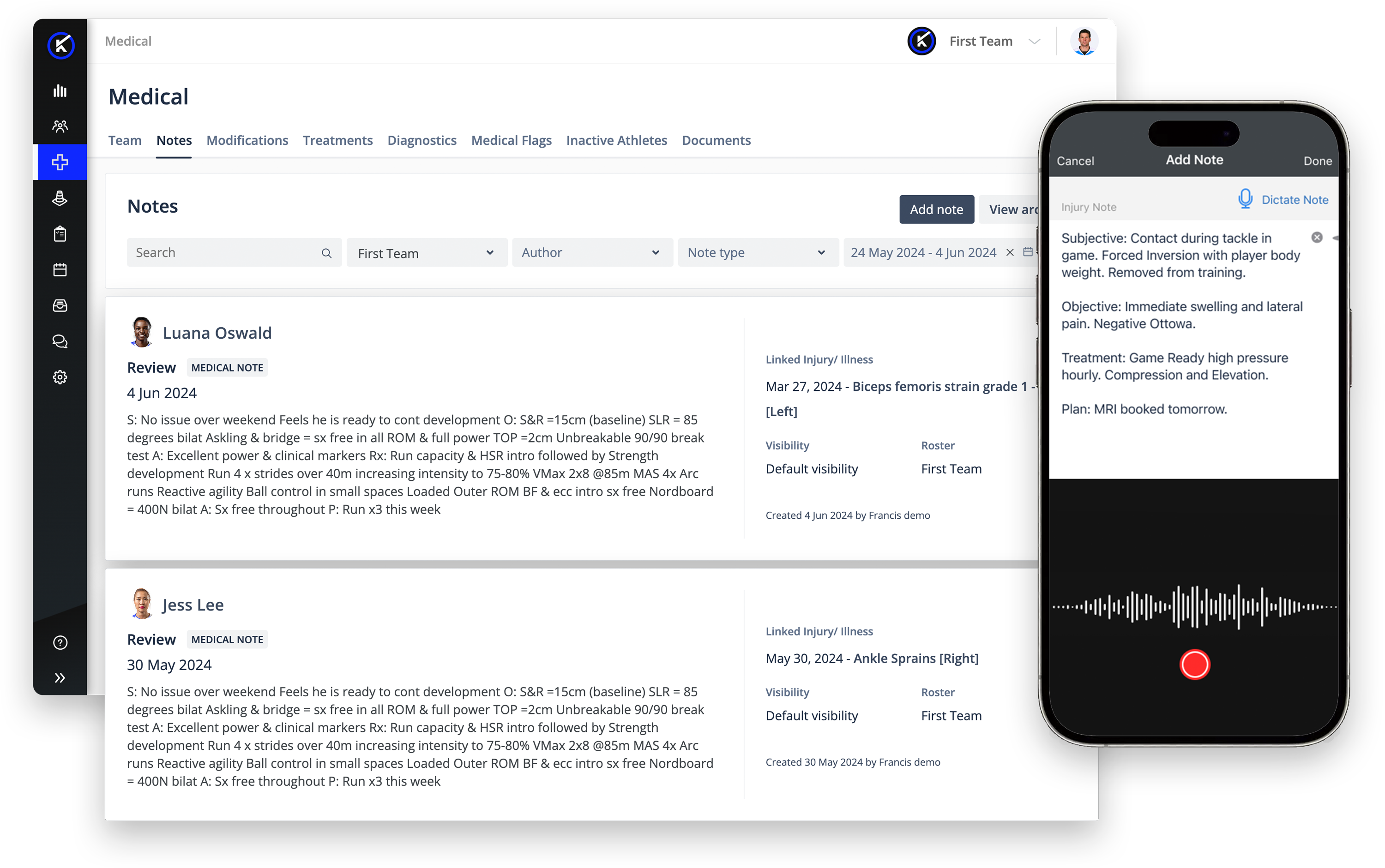 - Integrated Rehab Plans: Consolidated injury data and rehab plans in one location, creating a seamless connection between diagnosis, treatment, and recovery.