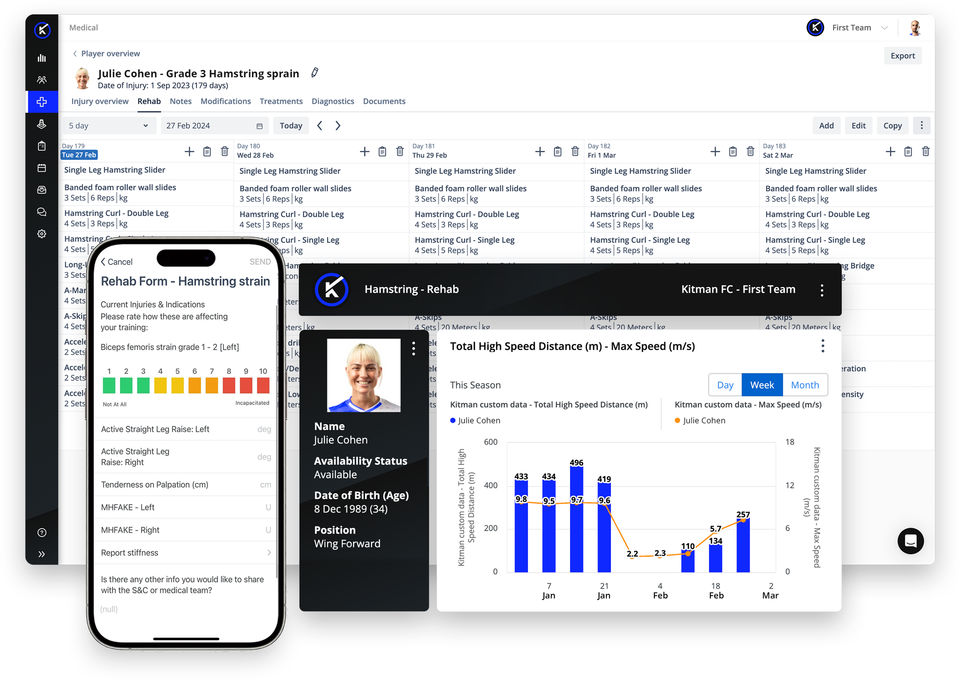 - 360-Degree Insights: Visualize the entire rehab journey for each athlete, including historical data, current progress, and future milestones.
