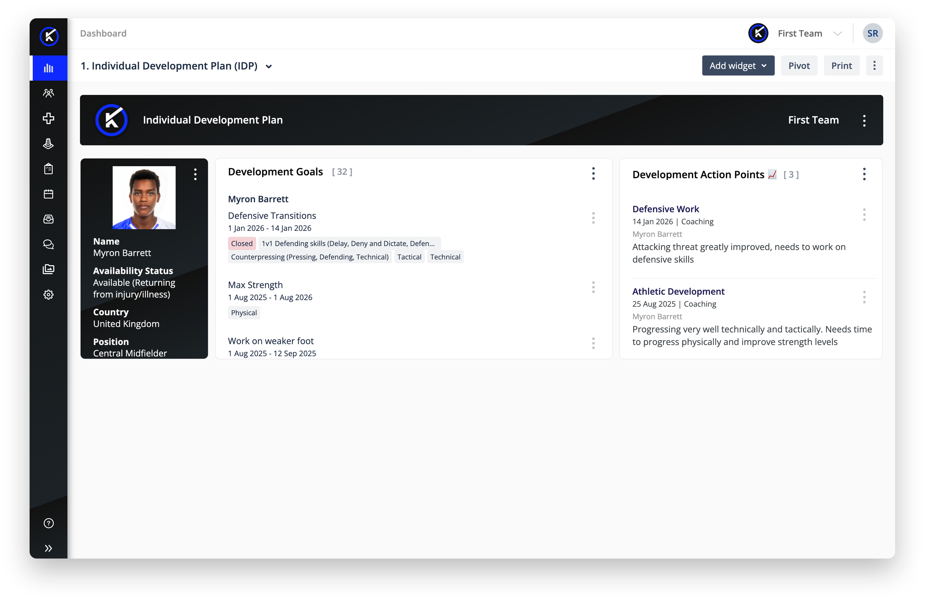 Monitor wellness, workload, injuries, and return-to-play processes to ensure safer, more consistent development across club and country environments.